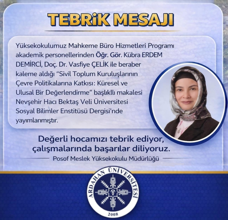 Öğr. Gör. Kübra ERDEM DEMİRCİ'nin Makalesi Yayınlandı